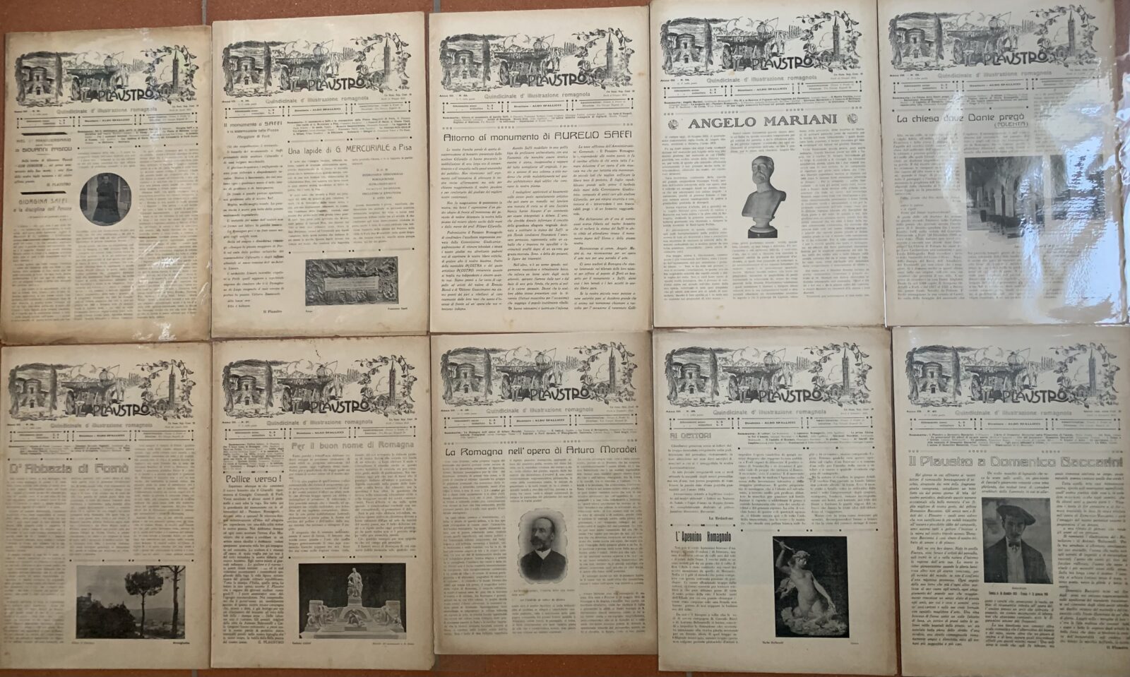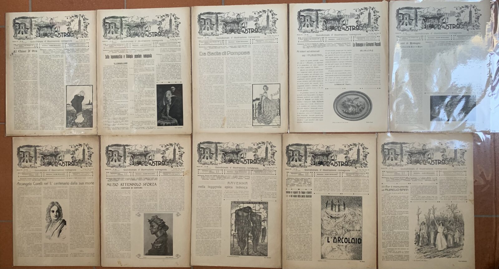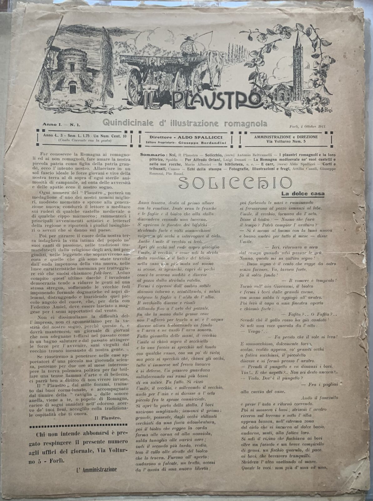 Aldo Spallicci (Direttore). Il Plaustro. Quindicinale (Bimensile dal 1914) di illustrazione romagnola. Serie completa n° 1-50. Casa Editrice Tip. Luigi Bombardini Forlì, 1911-1914.
