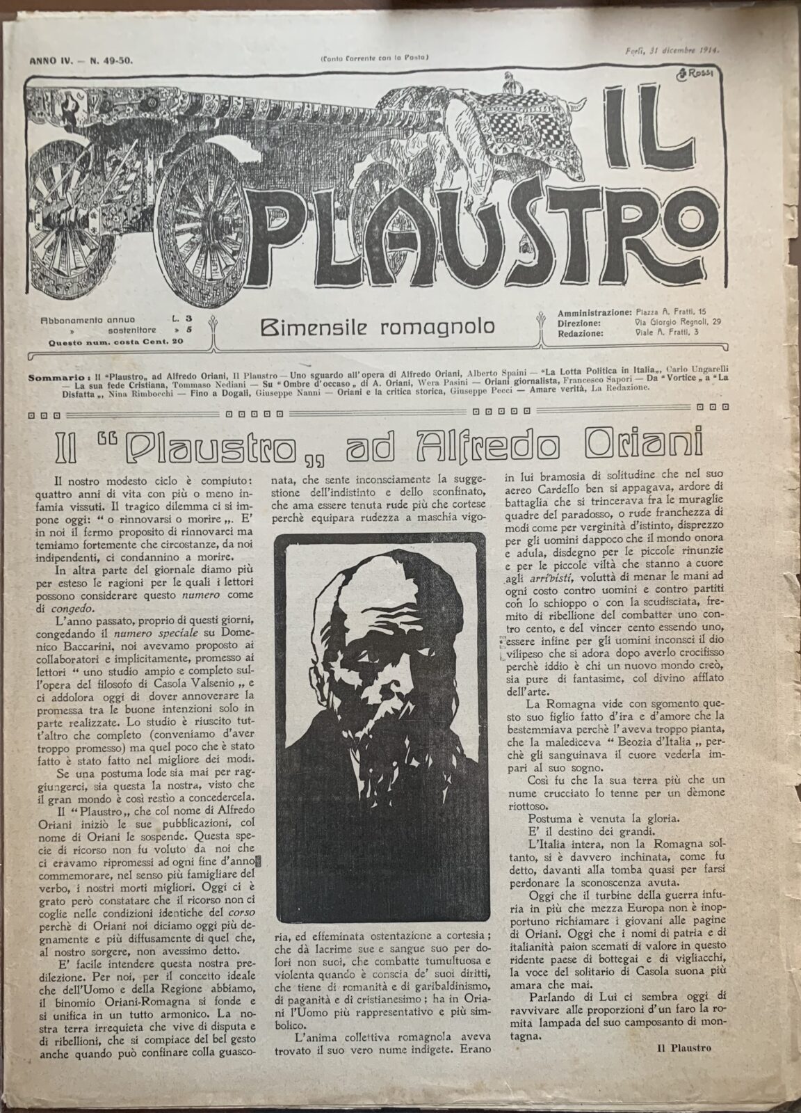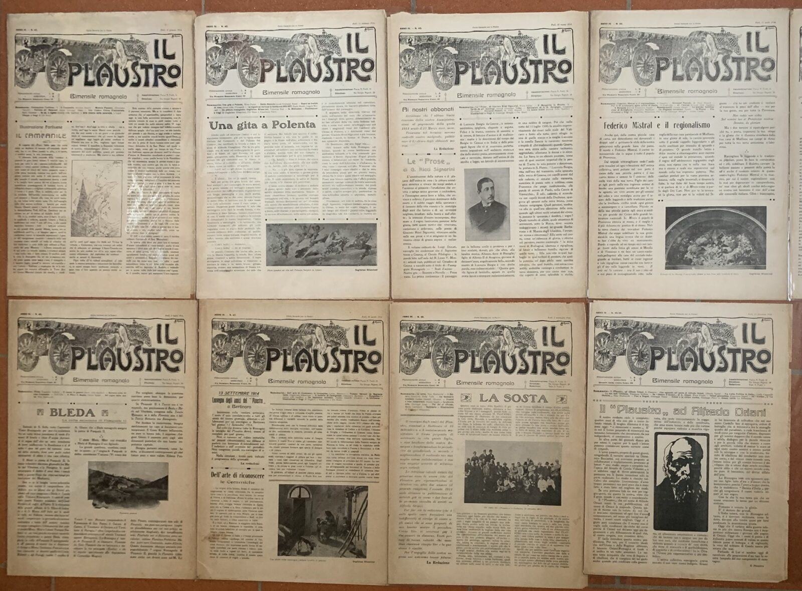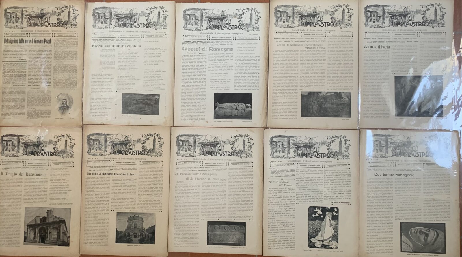 Aldo Spallicci (Direttore). Il Plaustro. Quindicinale (Bimensile dal 1914) di illustrazione romagnola. Serie completa n° 1-50. Casa Editrice Tip. Luigi Bombardini Forlì, 1911-1914.