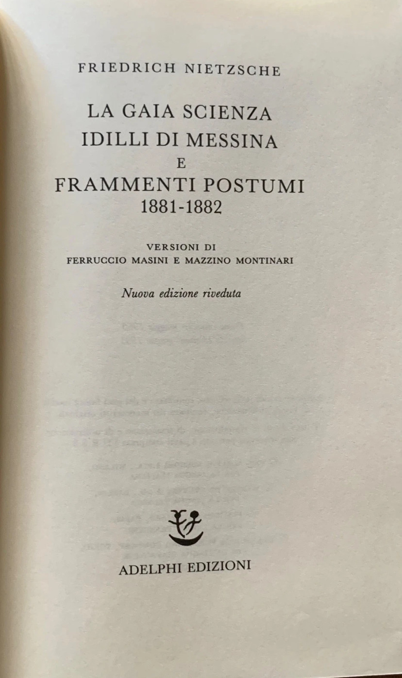 ![Friedrich Nietzsche - La gaia scienza. Idilli di Messina. Frammenti postumi 1881-1882 [Adelphi, 1991] - immagine 2](https://www.librisuperflui.com/wp-content/uploads/2026/02/IMG_1619.jpeg)