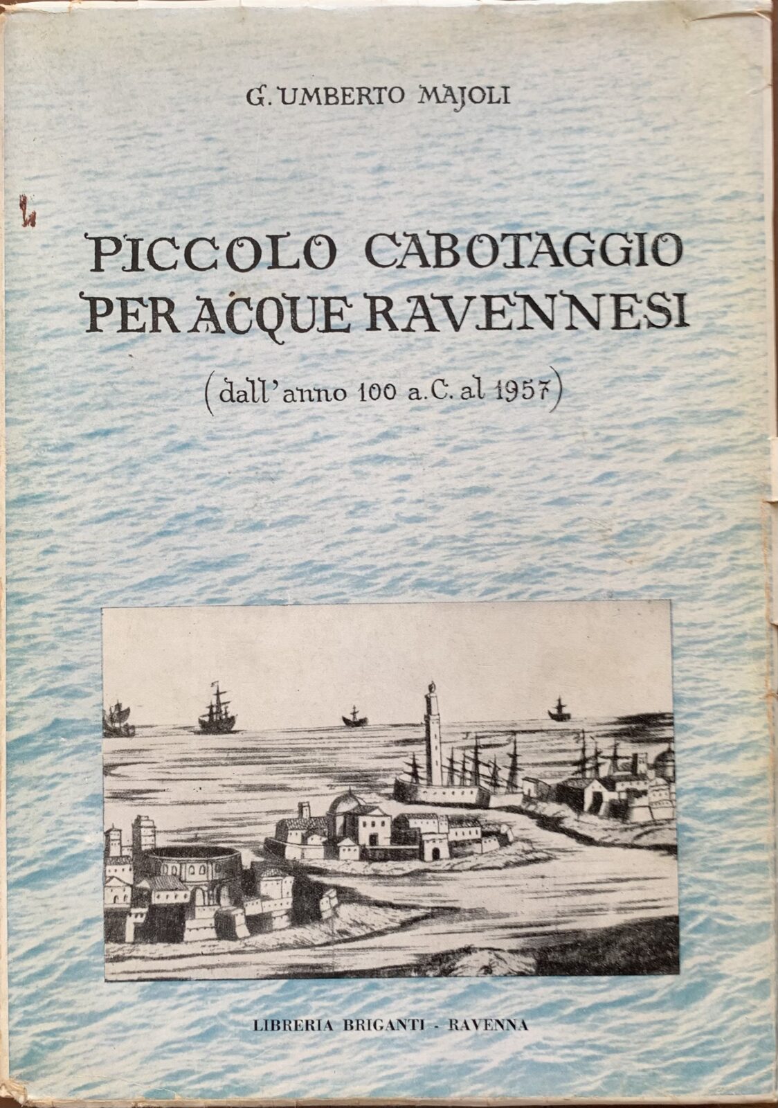G. Umberto Majoli. Piccolo cabotaggio per acque ravennesi (Dall’anno 100 a. C. al 1957). Libreria Briganti Ravenna, 1957. Brossura illustrata. Pagine 510. Dimensioni cm. 17,5 x 24,5. 1^ edizione. Con numerose illustrazioni a colori e in b/n. Alcune fioriture, per il resto esemplare in buone condizioni.