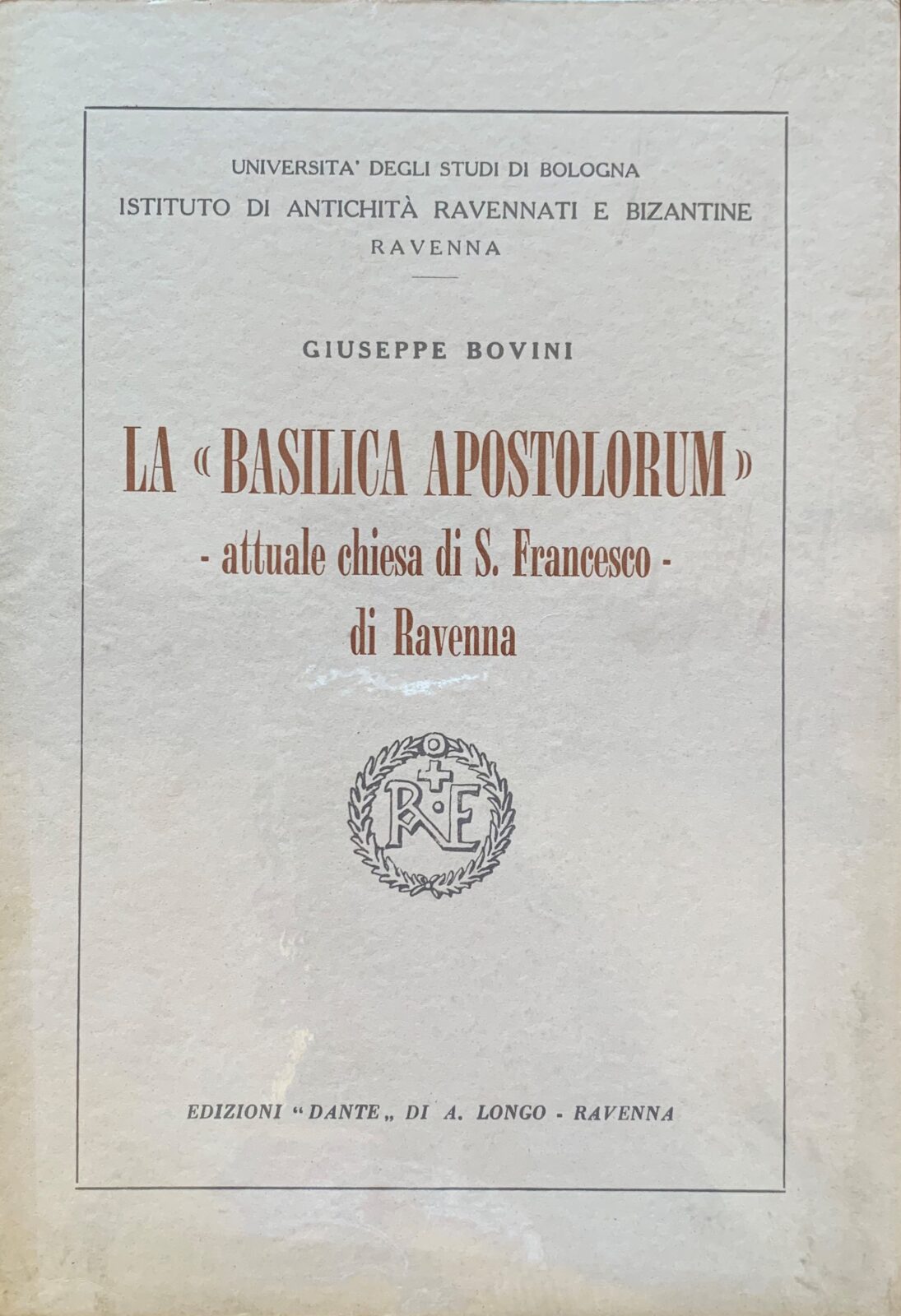 Giuseppe Bovini. La Basilica Apostolorum attuale chiesa di S. Francesco di Ravenna. Collana Quaderni di Antichità Ravennati Cristiane e Bizantine n° 3. Longo Ravenna, 1964. Brossura illustrata. Pagine 76. Dimensioni cm. 17 x 24,5. 1^ edizione. Con numerose illustrazioni in b/n. Esemplare in buonissime condizioni.
