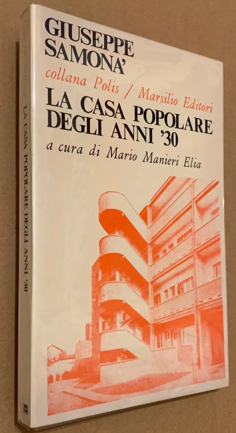 Giuseppe Samonà. La casa popolare degli Anni ’30. Collana Polis n° 13. Marsilio Venezia, 1973. Brossura illustrata. Dimensioni cm 13,5 x 21,5. 1^ edizione. A cura di Mario Manieri Elia. Con numerose illustrazioni in b/n. Firma di possesso all’interno, per il resto esemplare in buonissime condizioni.