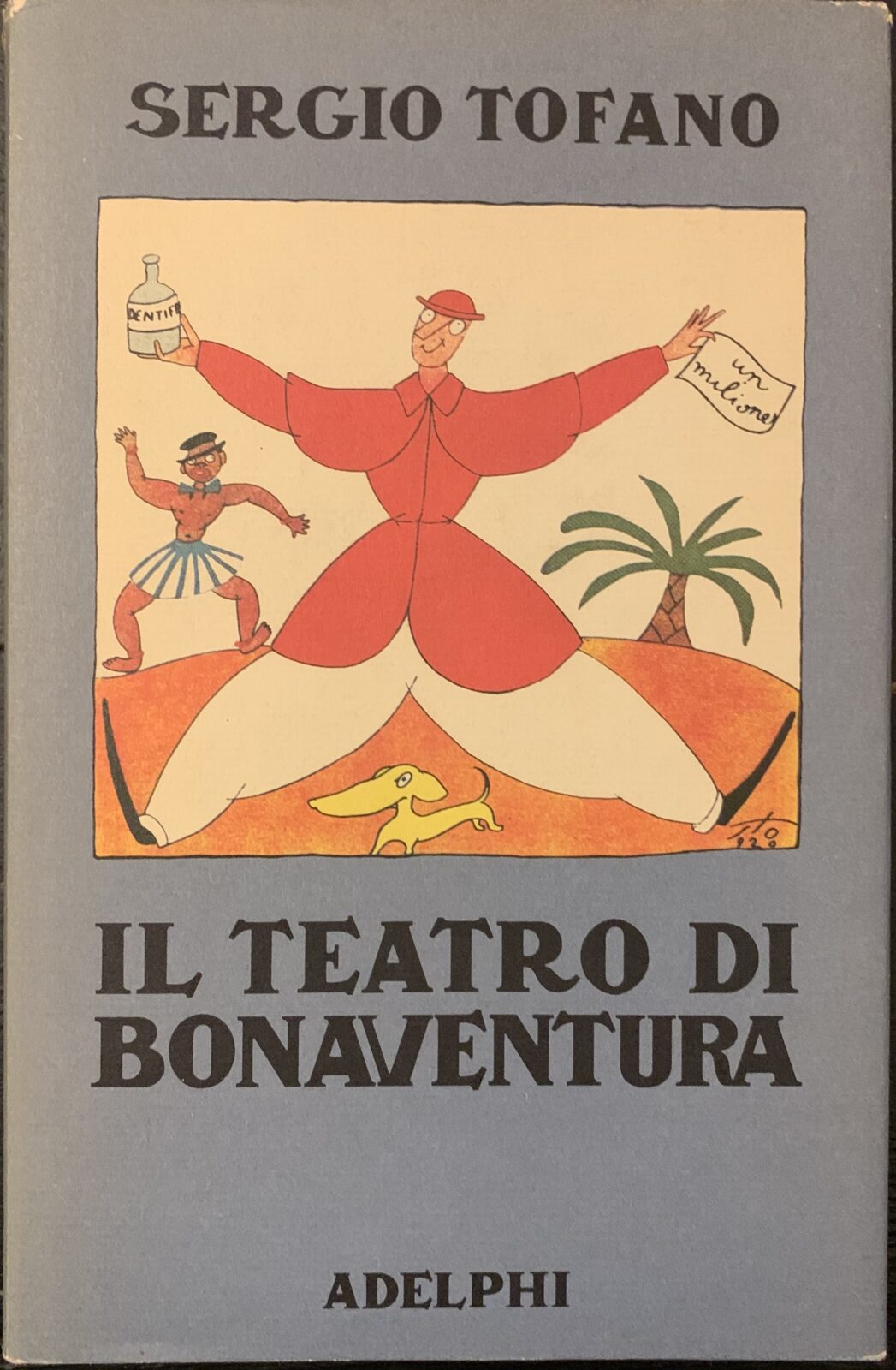 Sergio Tofano. Il teatro di Bonaventura. Adelphi Milano, 1986. Tela con sovraccoperta illustrata. Pagine 502. Dimensioni cm. 15,5 x 24. 1^ edizione. A cura di Alessandro Tinterri. Con alcune illustrazioni in b/n e a colori fuori testo. Esemplare in buonissime condizioni.