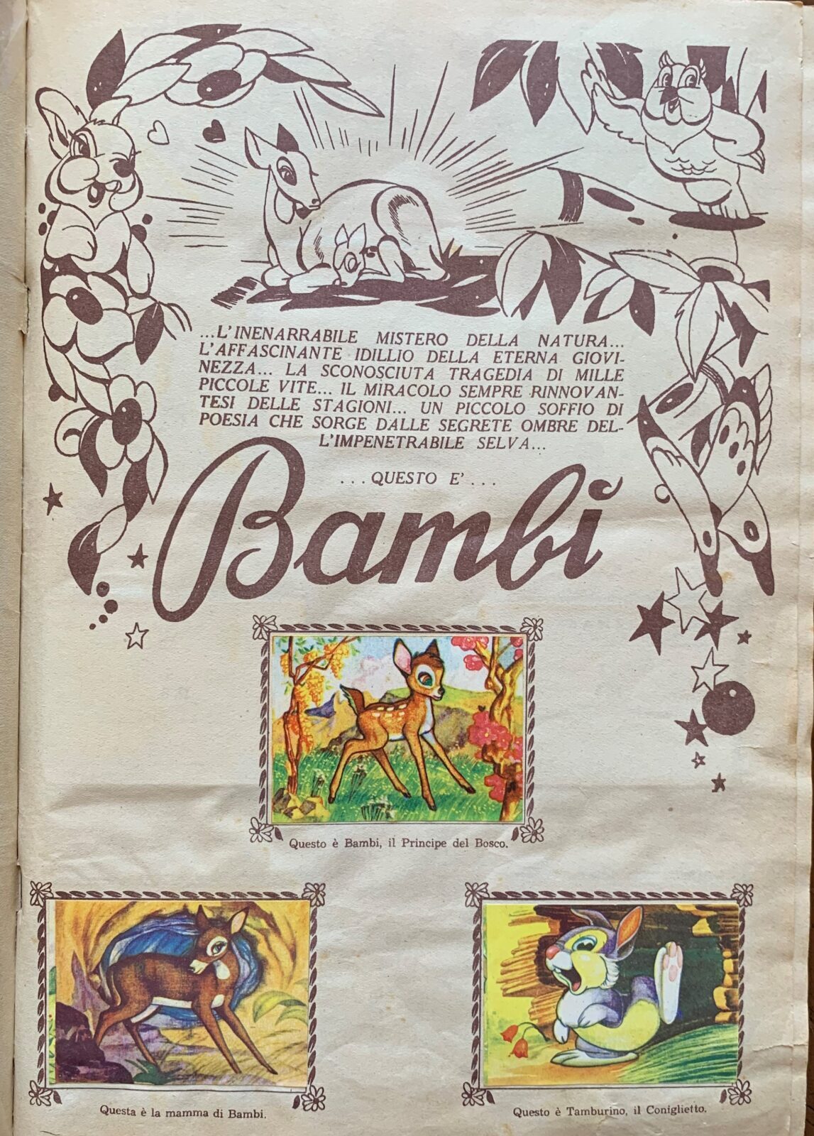 Walt Disney. Bambi. Album figurine completo. Edizioni Lampo Milano, 1951.
